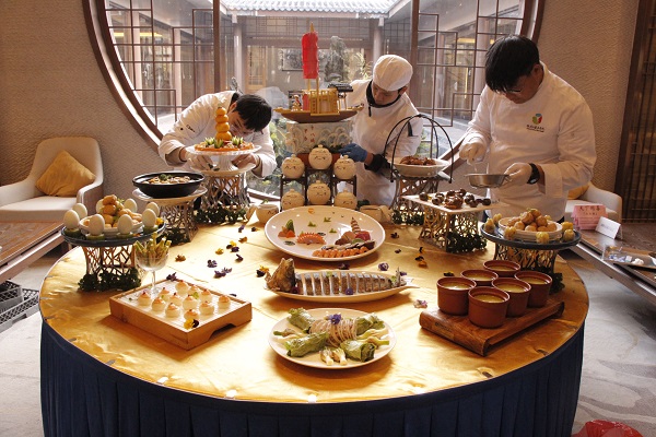 全魚釀、鮑魚釀、筍子釀、豆芽釀、羊肚菌釀……推廣展示活動中,溫德姆酒店團隊與桂林旅游學院團隊共同制作的“平樂十八釀宴席”,菜品造型精美、色香味俱全,一亮相就獲得了現(xiàn)場美食專家們的一致好評。