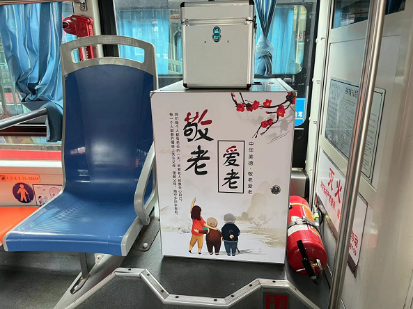 新推出的敬老愛老公交專線每輛車的車頭均張貼有“敬老愛老專線”標(biāo)識,車廂上車門貼有“老年人優(yōu)先上車”、下車門貼有“老年人下車請注意”標(biāo)志,車廂內(nèi)櫥窗張貼敬老愛老宣傳畫。同時,9路、21路沿途線路圖也已更換為紅色敬老愛老專線圖,將敬老愛老的文化傳統(tǒng)傳遞到每一位乘客的眼里、心里。